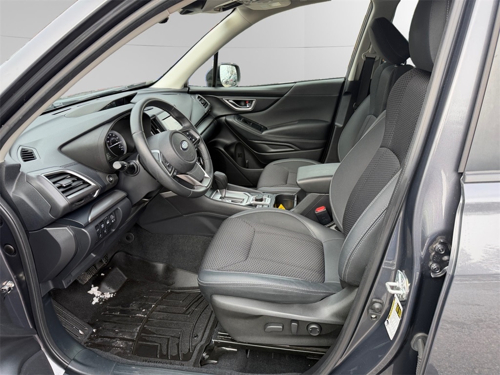 2 Sets of Keys, Adaptive Cruise Control with Low Speed Follow, Bluetooth HandsFreeLink and Streaming Audio, Carfax One Owner, Complimentary CarFax Vehicle History Report, Dual Zone Automatic Climate Control, Extremely Clean, Forward Collision Warning, Lane Departure Warning, Lane Keeping Assist System, Push Button Start, Remote Engine Starter/Remote Start/Remote Car Starter, Forester Premium, 4D Sport Utility, 2.5L 4-Cylinder DOHC 16V, Lineartronic CVT, AWD, Magnetite Gray Metallic, Black w/Premium Cloth Upholstery, 4-Wheel Disc Brakes, ABS brakes, Air Conditioning, Auto High-beam Headlights, Automatic temperature control, Blind Spot Detection w/RCTA & Power Rear Gate, Blind-Spot Detection (BSD), Brake assist, Driver's Seatback Divided Pocket, Dual USB Charge Ports, Electronic Stability Control, Exterior Parking Camera Rear, EyeSight System, Four wheel independent suspension, Front Bucket Seats, Front Center Armrest, Front fog lights, Fully automatic headlights, Heated Front Bucket Seats, Heated front seats, Multi-Function High Grade Display, Panic alarm, Power driver seat, Power Rear Gate, Power steering, Power windows, Premium Cloth Upholstery, Rear window defroster, Rear window wiper, Remote keyless entry, Security system, Speed-sensing steering, Split folding rear seat, Steering wheel mounted audio controls, Traction control, Variably intermittent wipers, Wheels: 17" x 7.0 J Black Machine Finish Alloy.